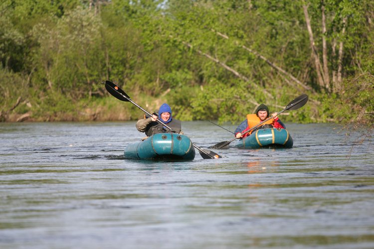 — Erin and Tom paddling down the Mulchatna River in the Alpacka rafts.