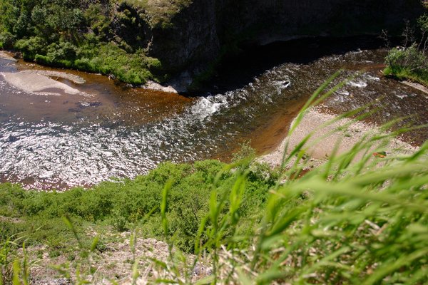 — Looking down on Upper Talarik Creek gorge, from a cliff above it.