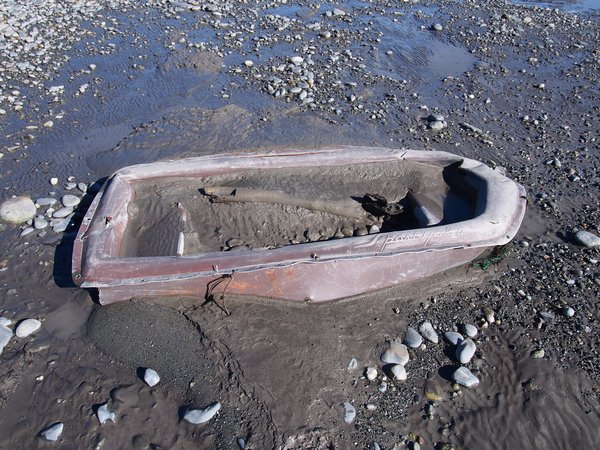 Small boat uncovered by the tides