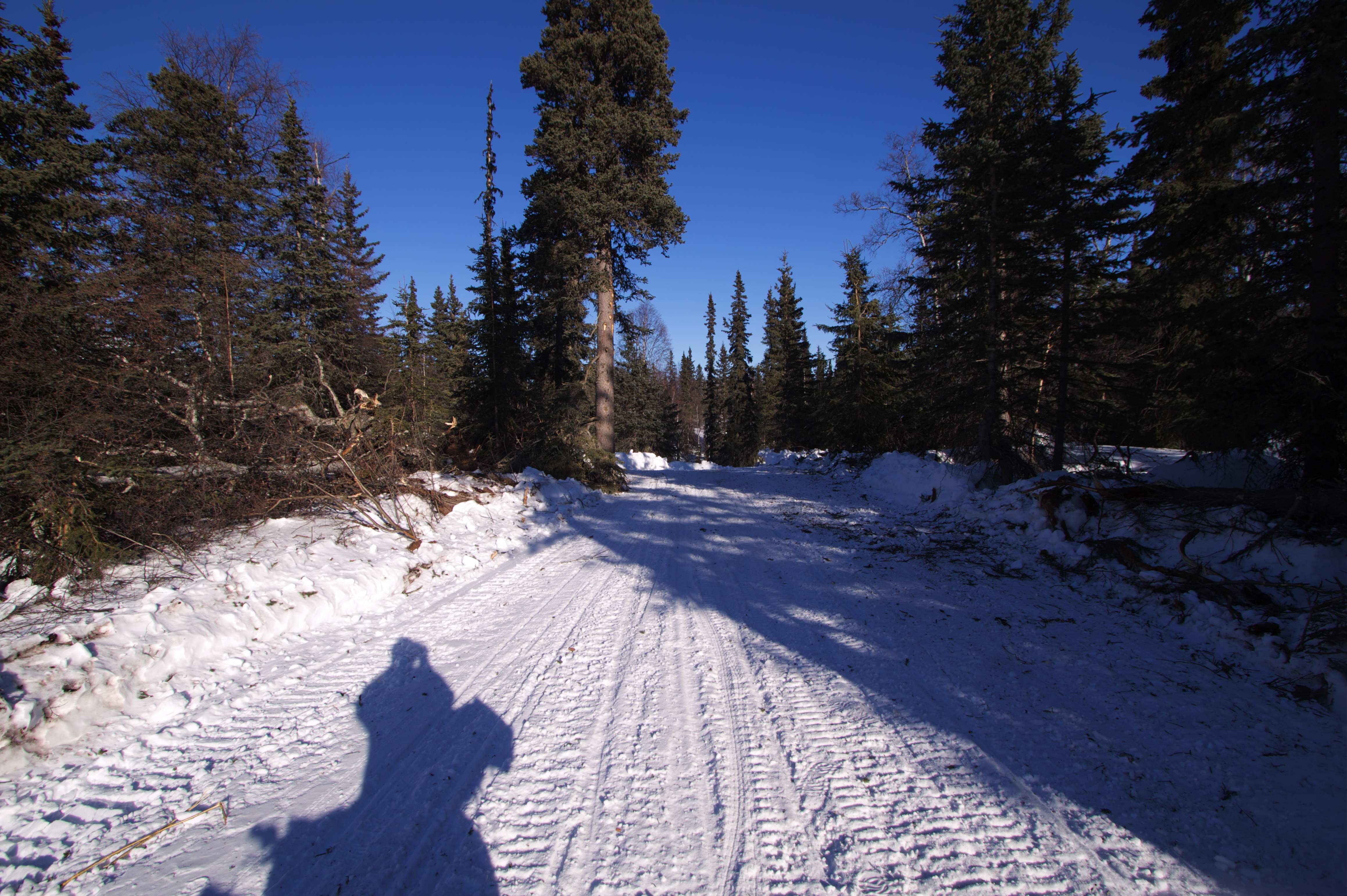 — Ice road paralleling Iditarod trail and Skwentna river.