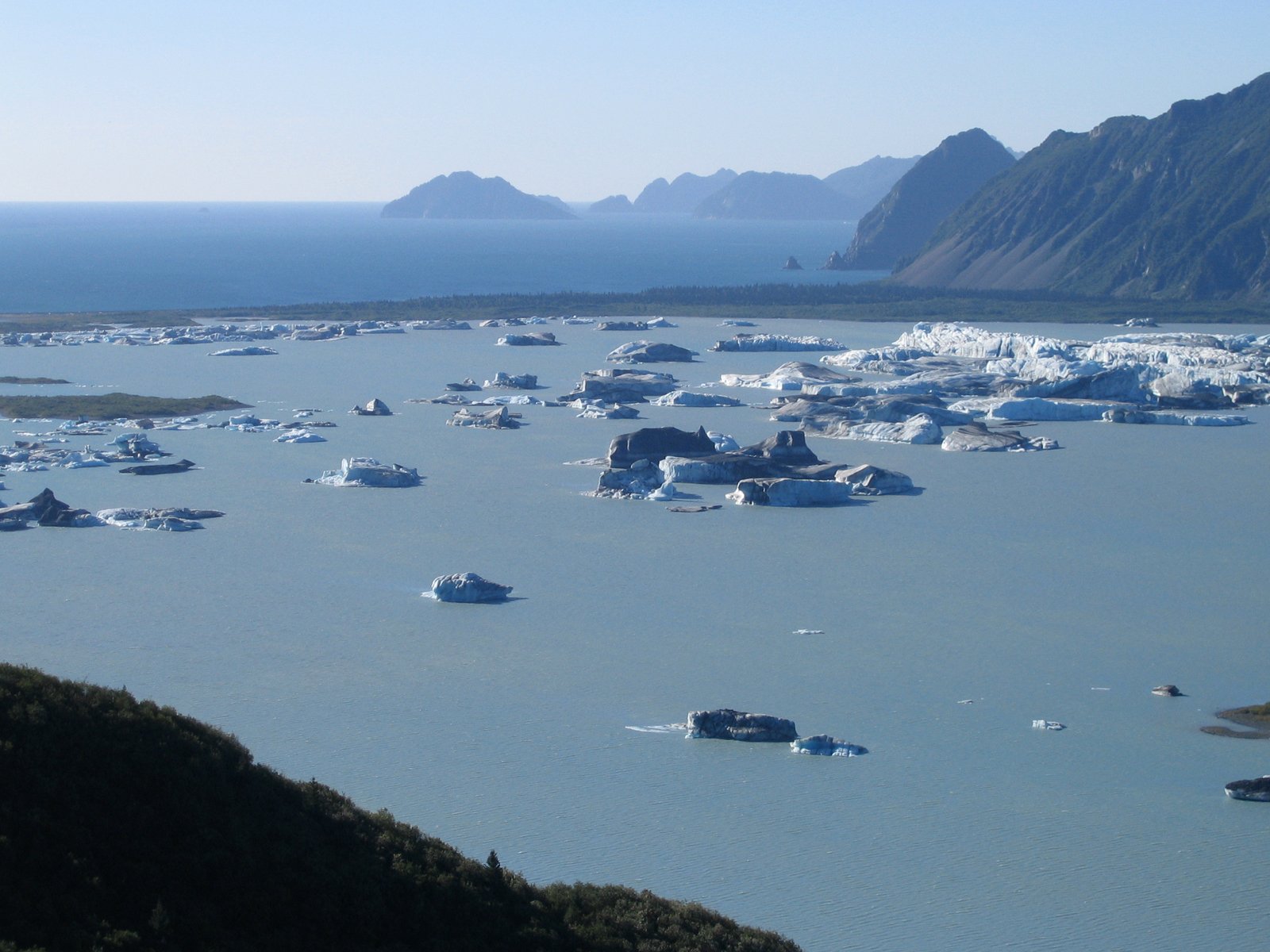 — Recently a glacier nearly to tidewater, this lake has opened up in front of a glacier in the Kenai Fjords