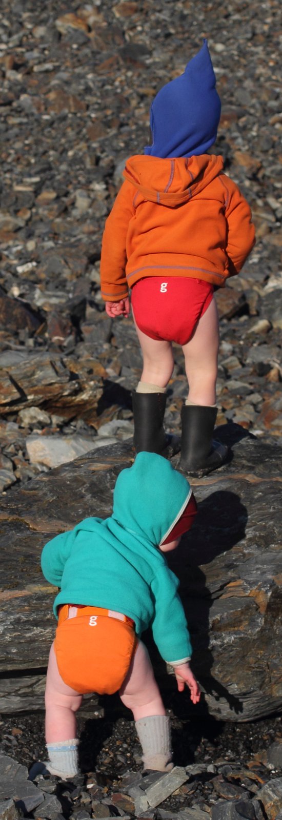 — These diapers have three components - a cloth outside, a rubber liner, and an absorbant pad. The pad is made of paper and other easily biodegradable materials and so can be burned or handled like adult human waste. The rubber liner is easy to wash, and the cloth outside rarely gets dirty. This makes it a system perfect for light trekking. We'd carry a bunch of the bulky but light pads, and only had to do a small load of laundry about once every two weeks.
