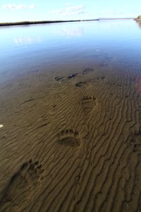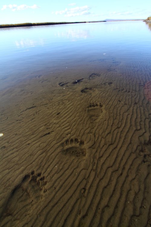 Bear tracks mark silt in the shallow edge of the Noatak River.