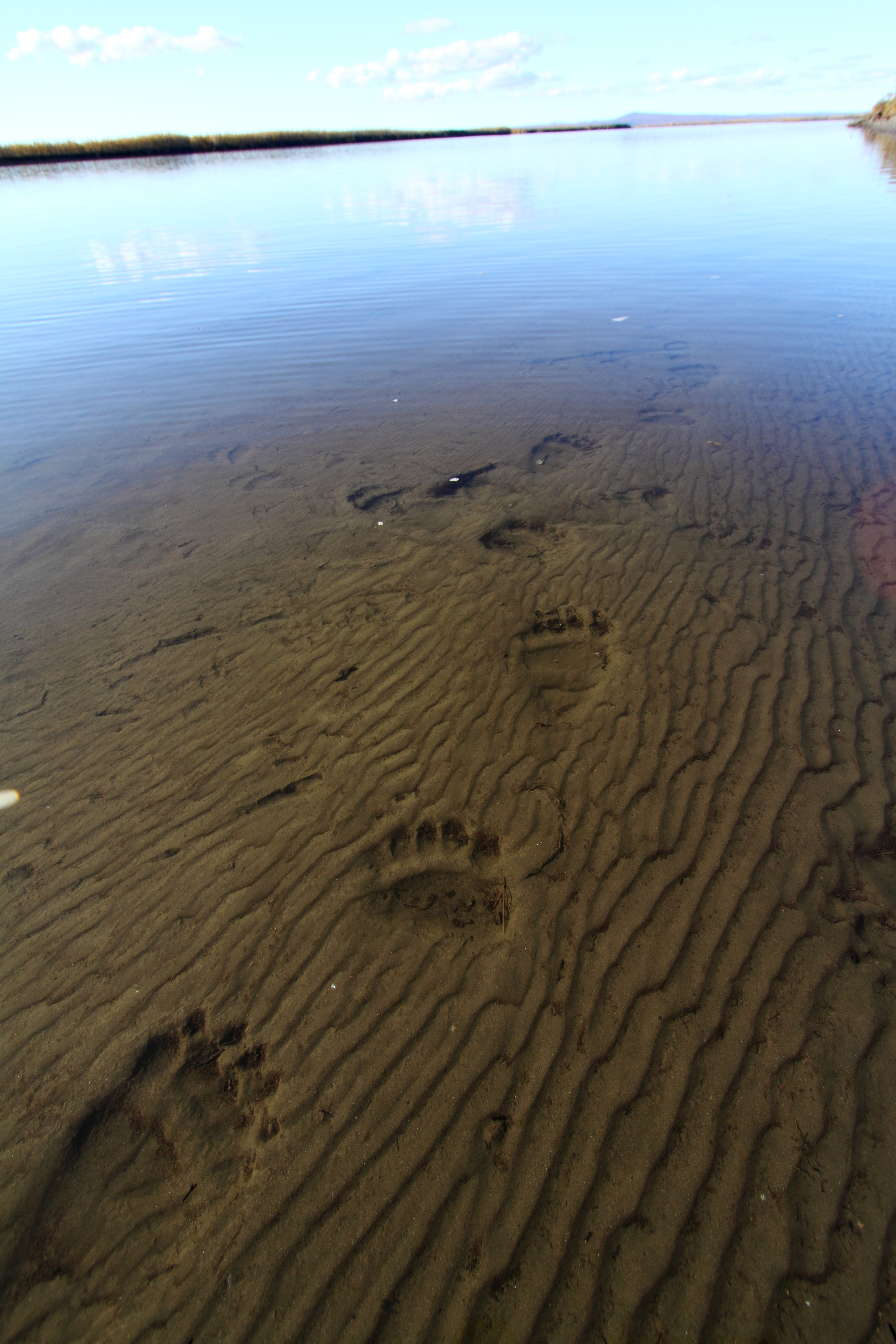 — Bear tracks mark silt in the shallow edge of the Noatak River.