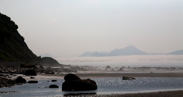 Mist softens the view across Kachemak Bay from the Homer beaches