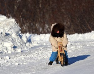 Katmai tries out his balance bike in single digit temperatures.