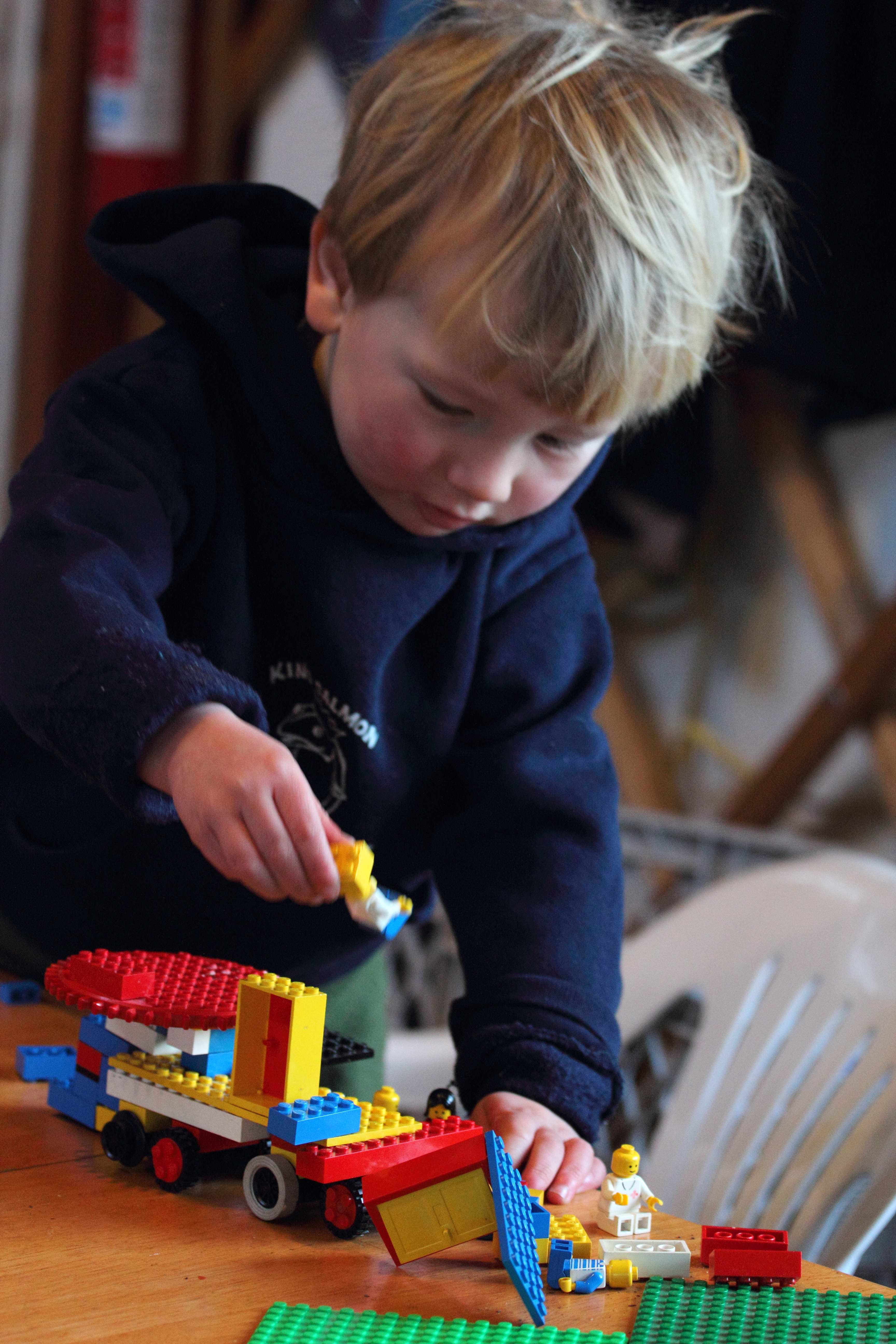 When he's not visiting full-size construction equipment, Katmai builds "backhoes", "loaders" and "cranes" with his legos