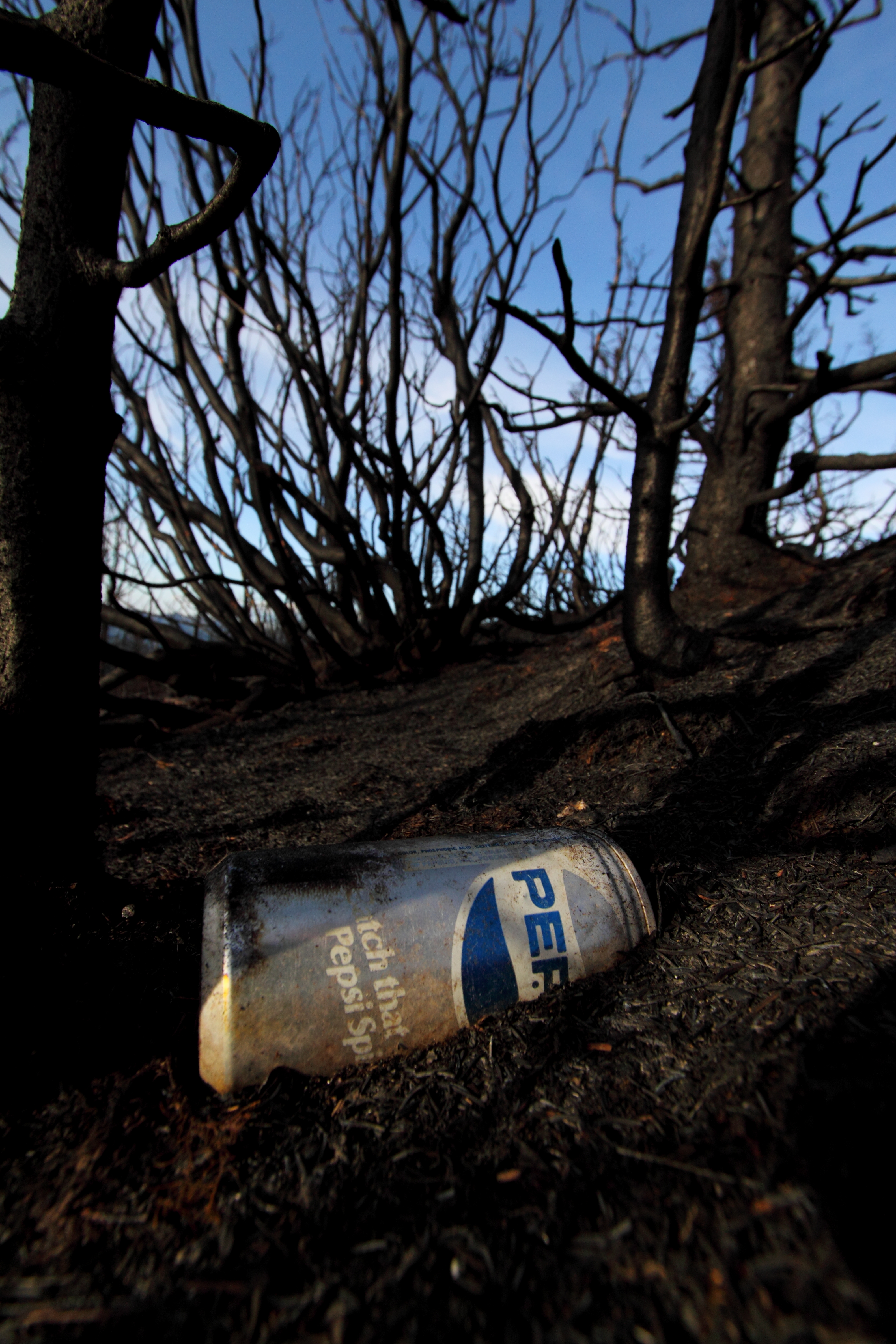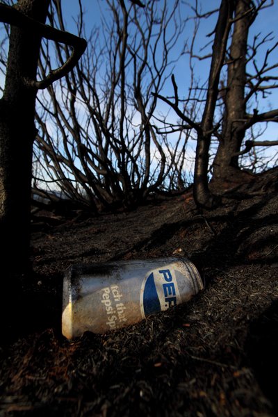 — This can survived the fire, though the paint was damaged. So it must not have exceeded 1220 F (660 C), the melting point of aluminum.