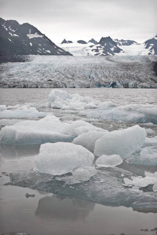 Floating ice was found stacked near our campsite after an overnight calving event