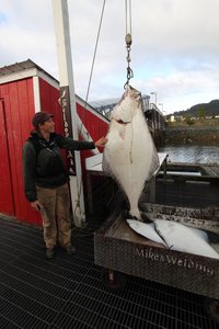 — We didn't have a scale, but based on length and estimated girth we think it was about 120 lbs.
