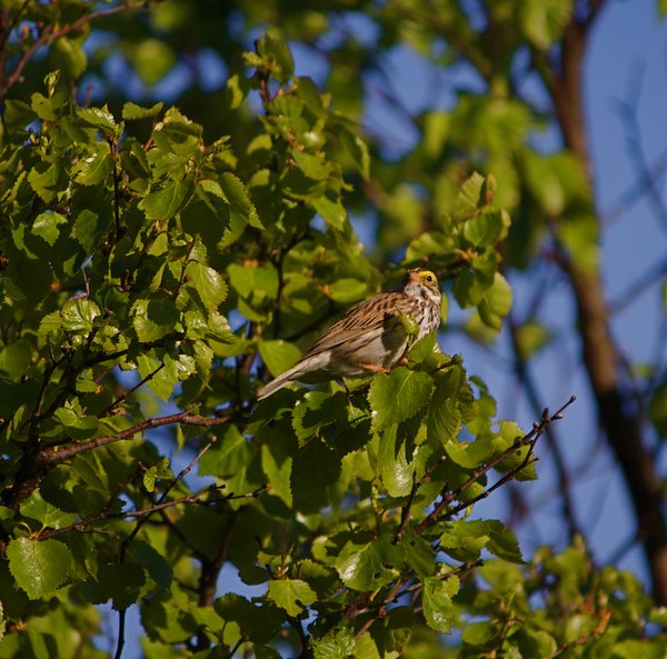 — In the spring and early summer, the three note ( oh-dear-meee ) song of the sparrow fills the brush and surrounding forest.