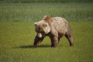 — Grizzly bears, like humans, utilize plantigrade locomotion; soles of their feet flat on the ground and heel to toe strides.