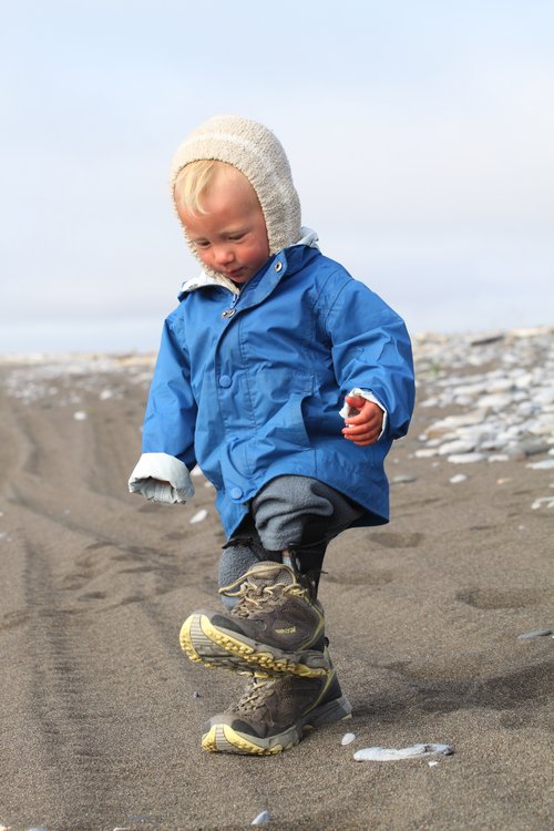 — Showing off mom's trail running shoes to the world
