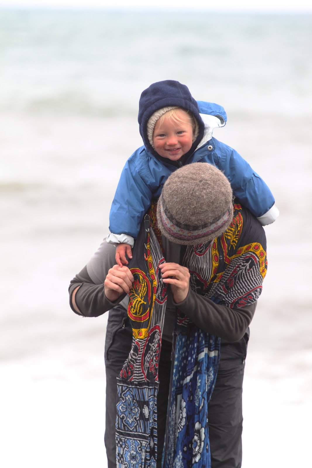 — With practice, tying Katmai on in the wrap is easy. I can't prevent him from tossing my hat, though.