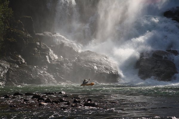 Approaching from the bottom, the lake at the base of this remote waterfall was a great place to play.