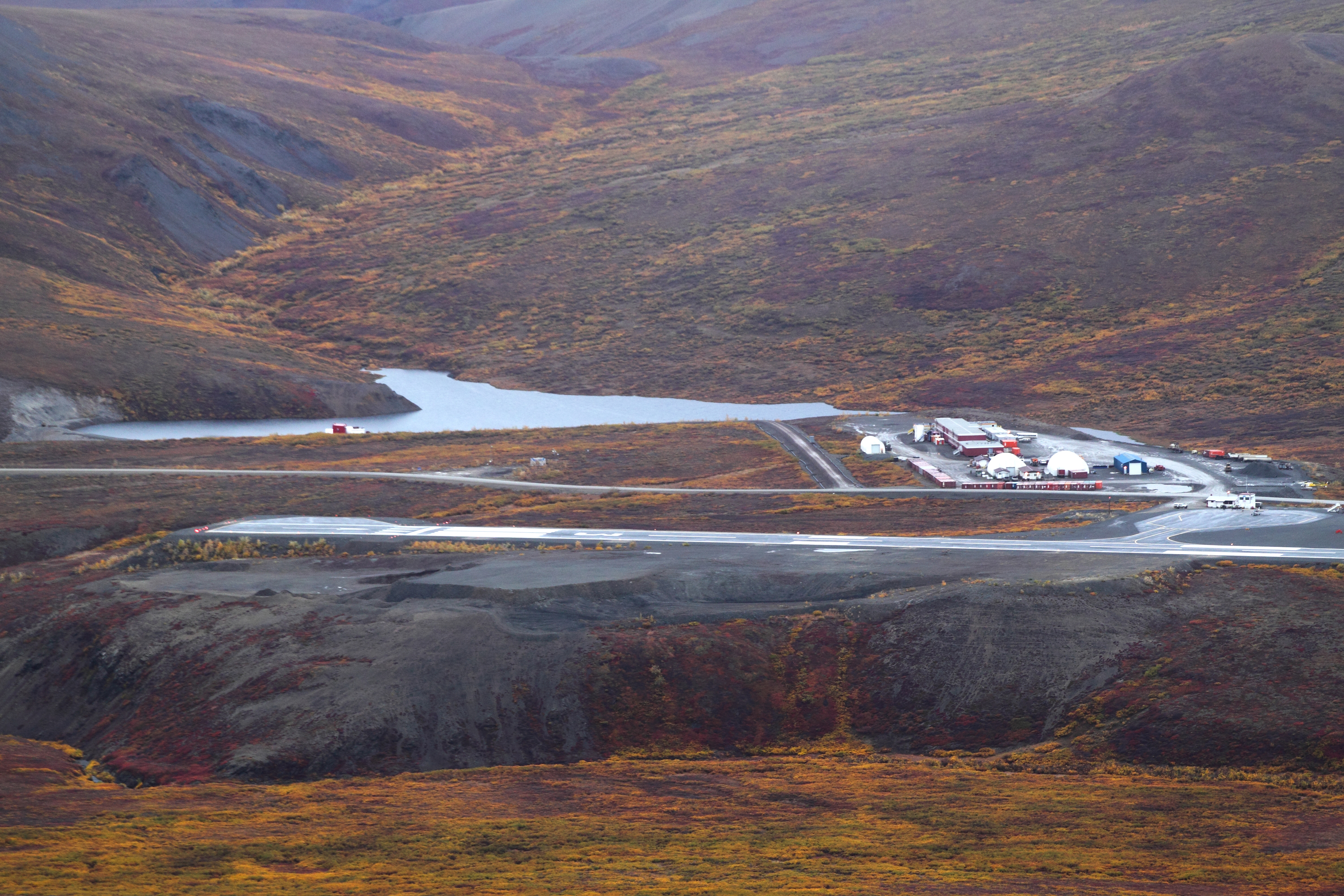 — Red Dog's air strip, living facilities, and drinking water pond.