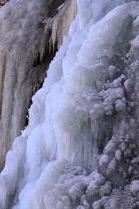 — Ice flows over a cliff to the beach on the Seldovia shore
