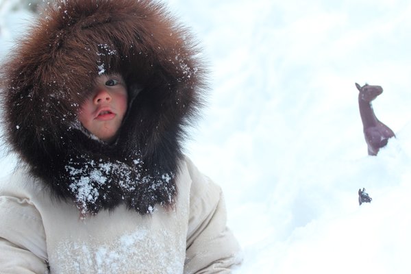 Katmai brings his plastic horses on an "adventure" behind the yurt