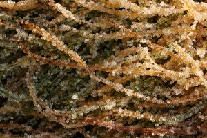 — Photo showing herring eggs laid on the beaches of Sitka in mid-April, 2011.