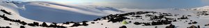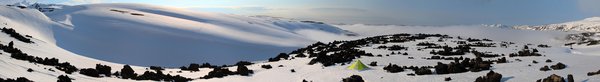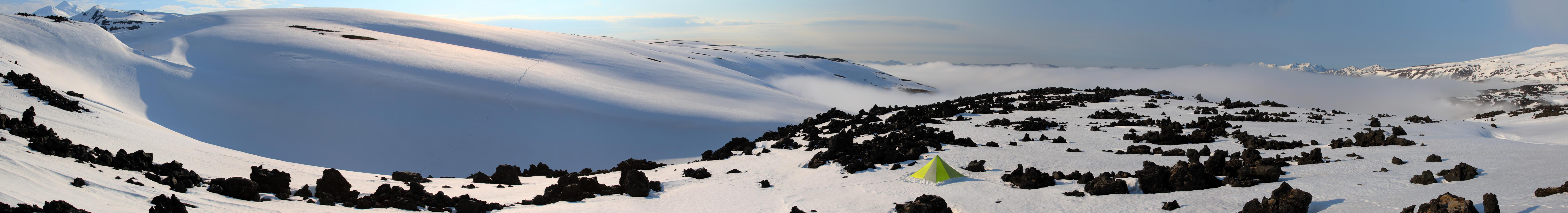 Tent in a lava flow panorama