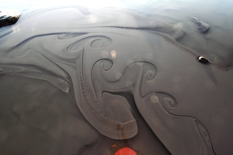 — Clay washed down during a warm spell mixes with clear seawater.