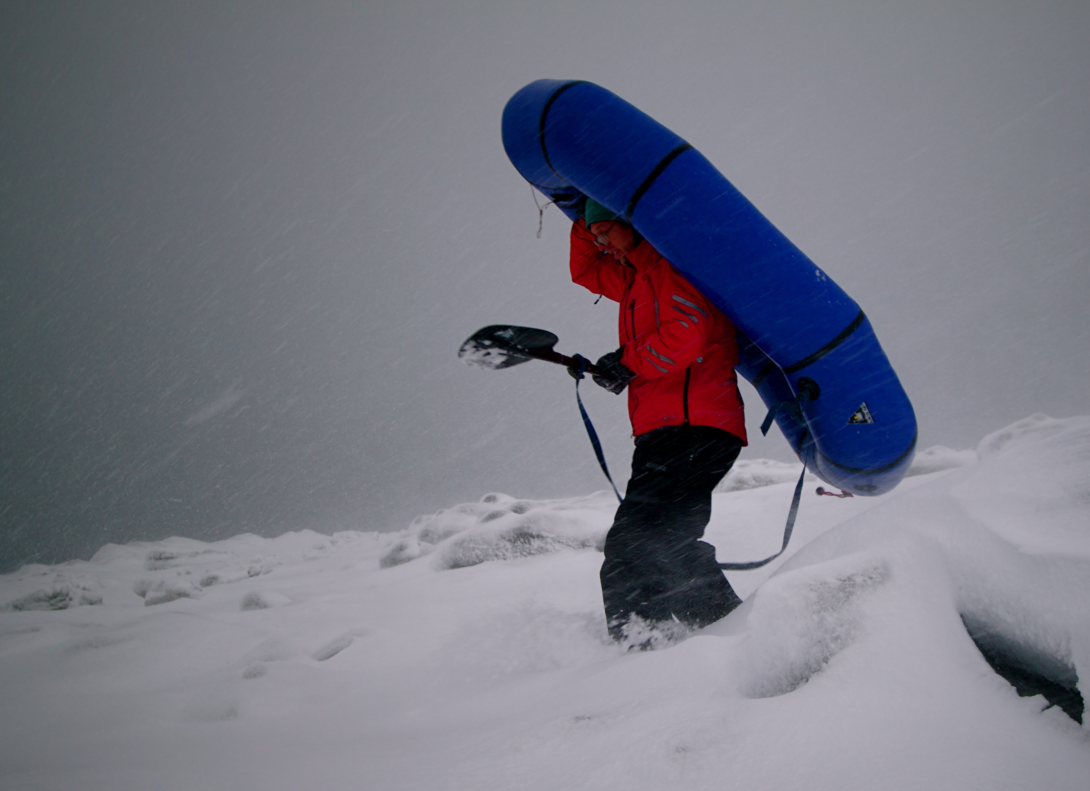 — Hig carries through the drifts to the launch.