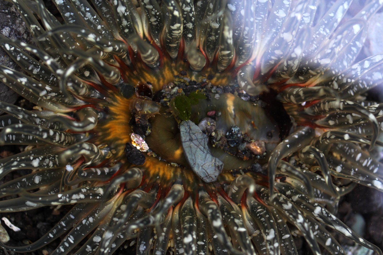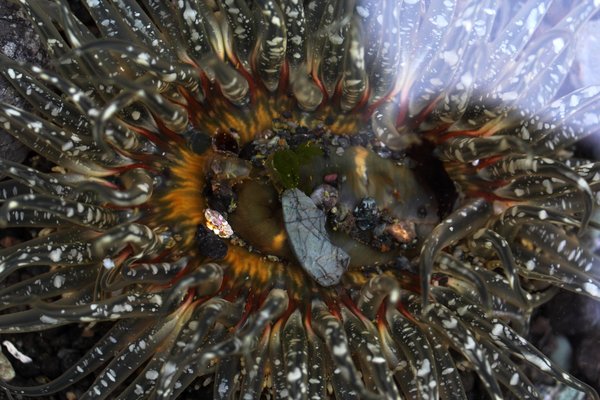 Their tentacles are nearly transparent, but marked with bright white bands and blotches