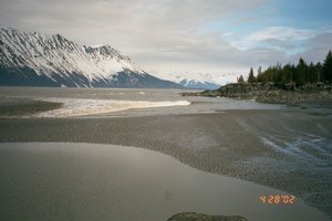 — Photo 2 - looking east up Turnagain Arm. The bore is about to reach the gently sloping sand/silt beach.