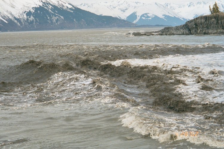 — Photo 7 -the reflected bore accelerates as it enters water about 2 meters deep at roughly the shore-line before the bore.