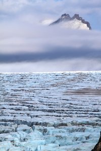 — A nunatak is essentially an island in a glacier--a patch of land where all around is ice. Often they are carved into sharp spines like this. As the ice recedes, new islands appear, and old islands grow, exposing brand new land to the shoes of hikers and the hoofs of goats.