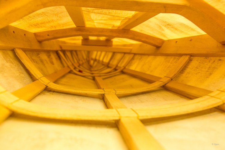 — Inside a quayak. Maligiak Padilla, from Greenland, has been teaching traditional qayaq building in the Bering Straights school district.