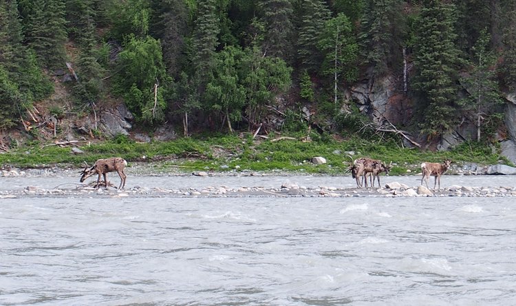 Caribou on gravel bar island