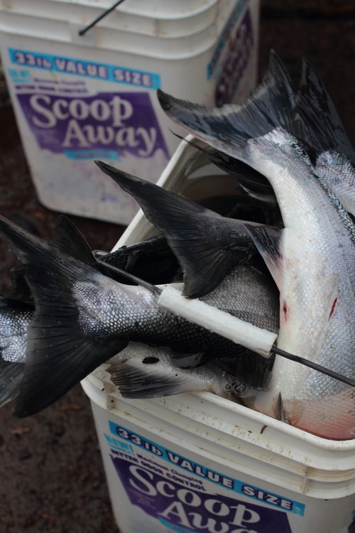 Preparing salmon snagged in Tutka Bay.