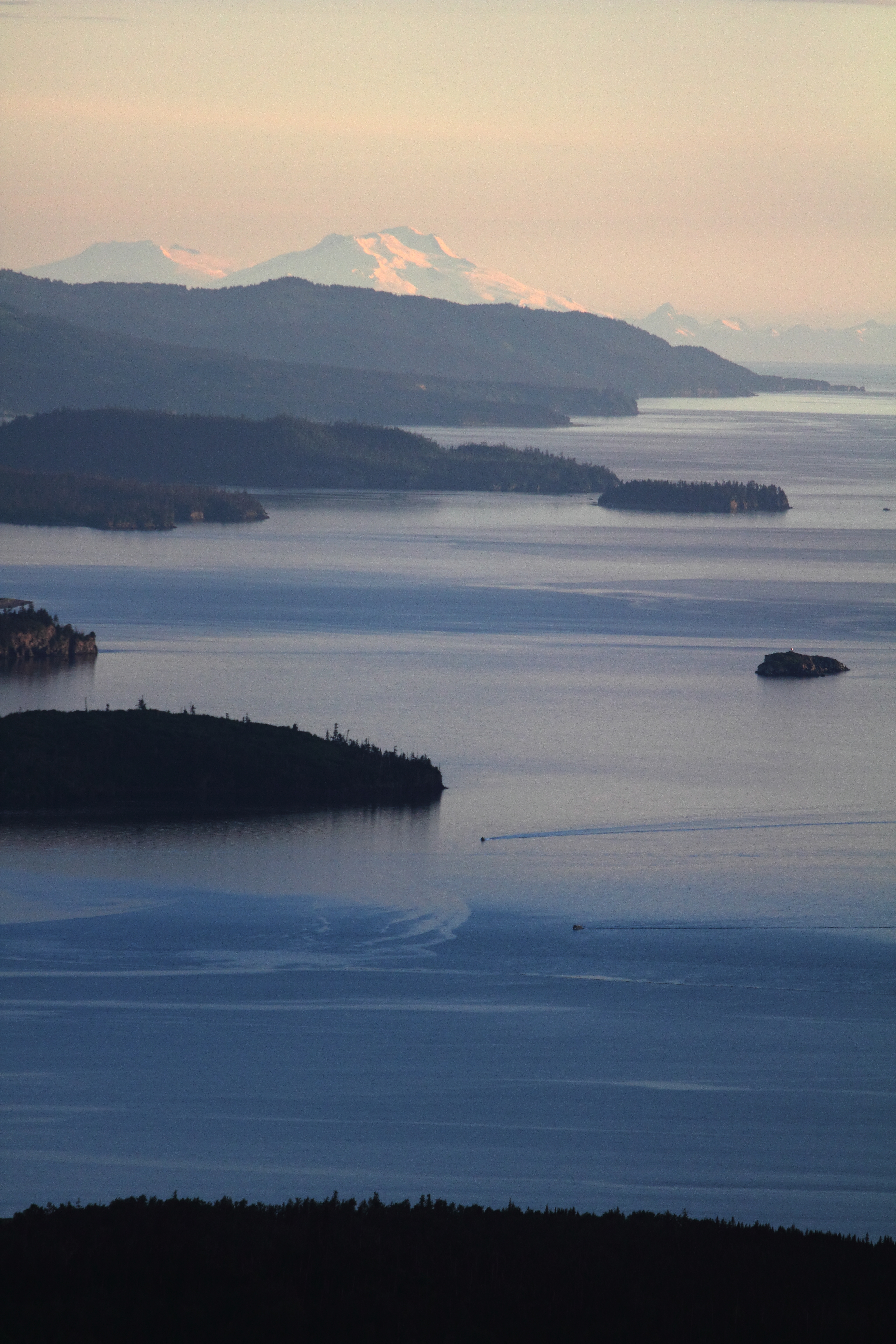 — Two distant boats make their way into Halibut Cove in Kachemak Bay State Park.