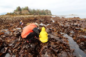 Looking for critters on a reef exposed at low tide along Kachemak Bay.