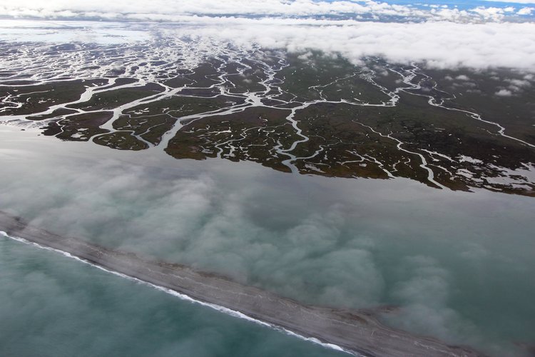 — A thin barrier spit sits offshore of the Kongakut Delta in then Alaska National Wildlife Refuge.