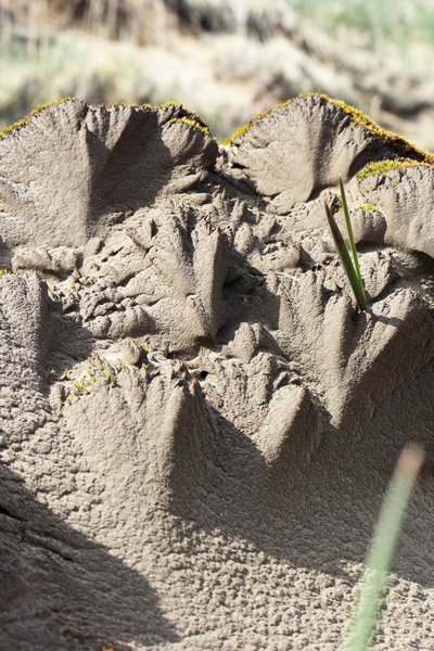— Wind-driven silt and sand erodes and acretes into flower-like patterns.