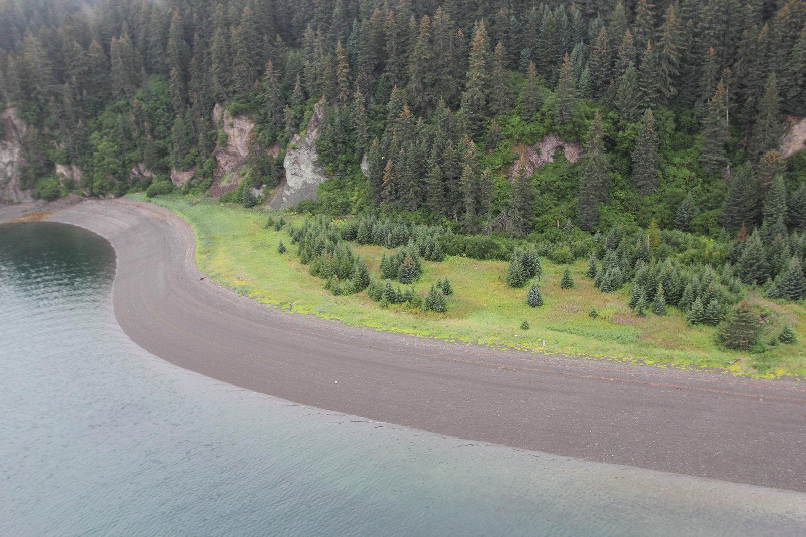 — Young trees sprout amongst the stumps of trees that died when this shoreline subsided during an earthquake in 1964.