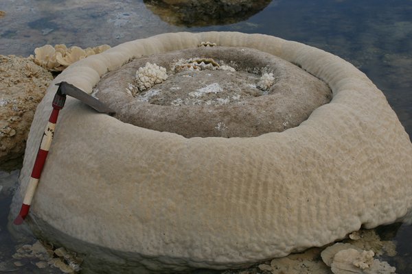 — The 28 March 2005 Nias Earthquake was the third earthquake that lifted this coral out of the water, killing the upper part while leaving the lower part alive. In time, the land will subside again, and a fourth ring of coral will grow up the sides of this dome.