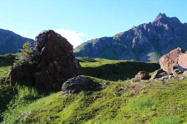 — Boulders and tundra in the mountains above Taylor Bay.
