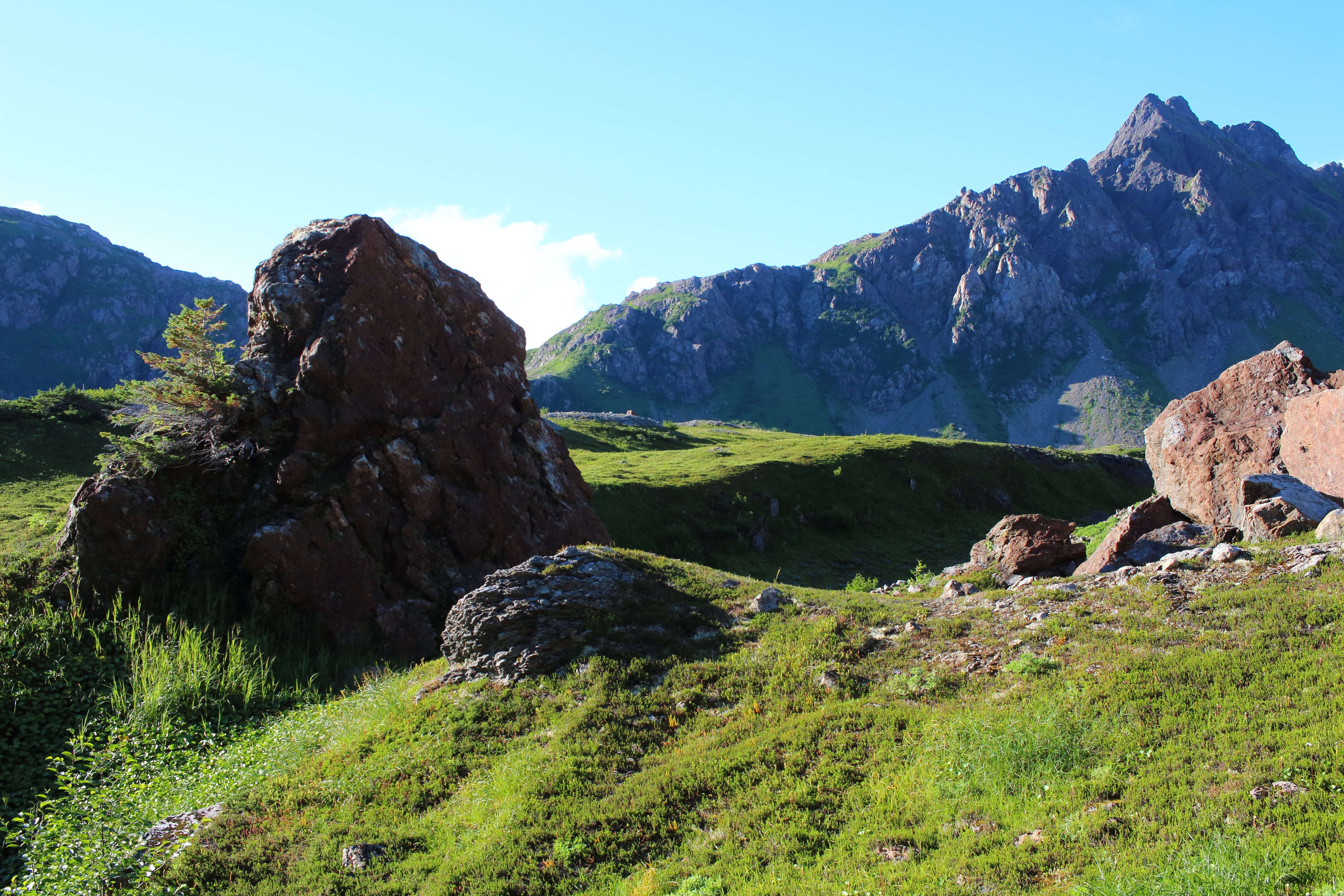 Boulders and tundra in the mountains above Taylor Bay.