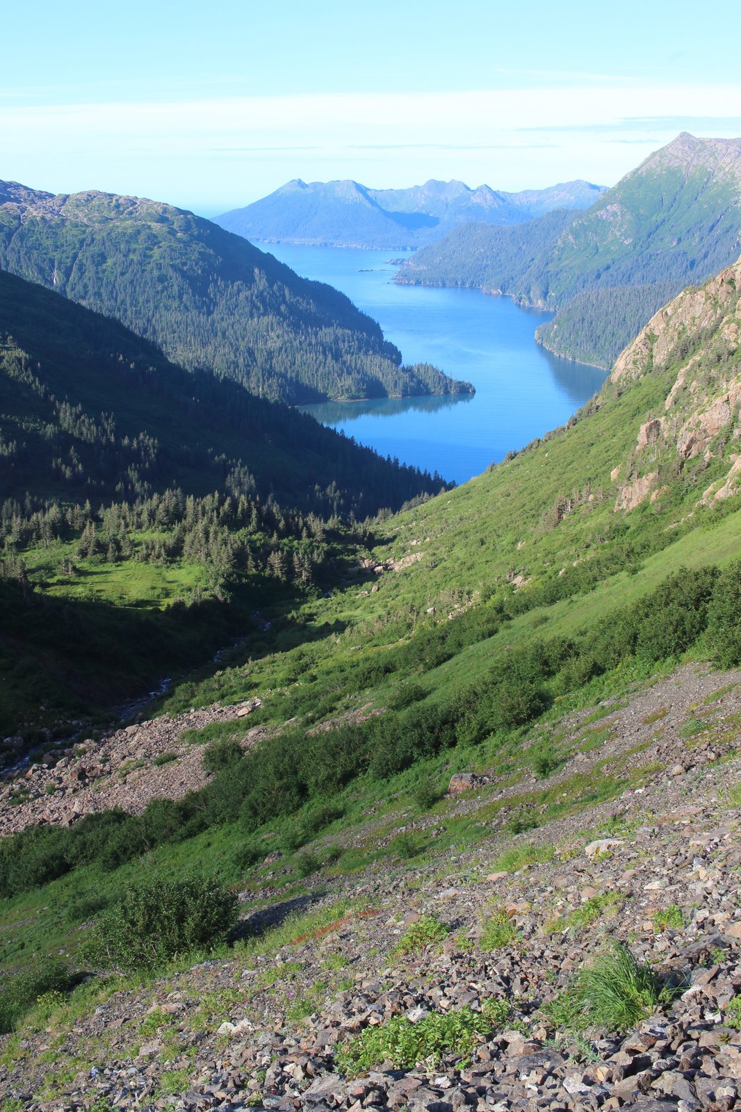 — Taylor Bay winds its way out to the ocean below the pass.