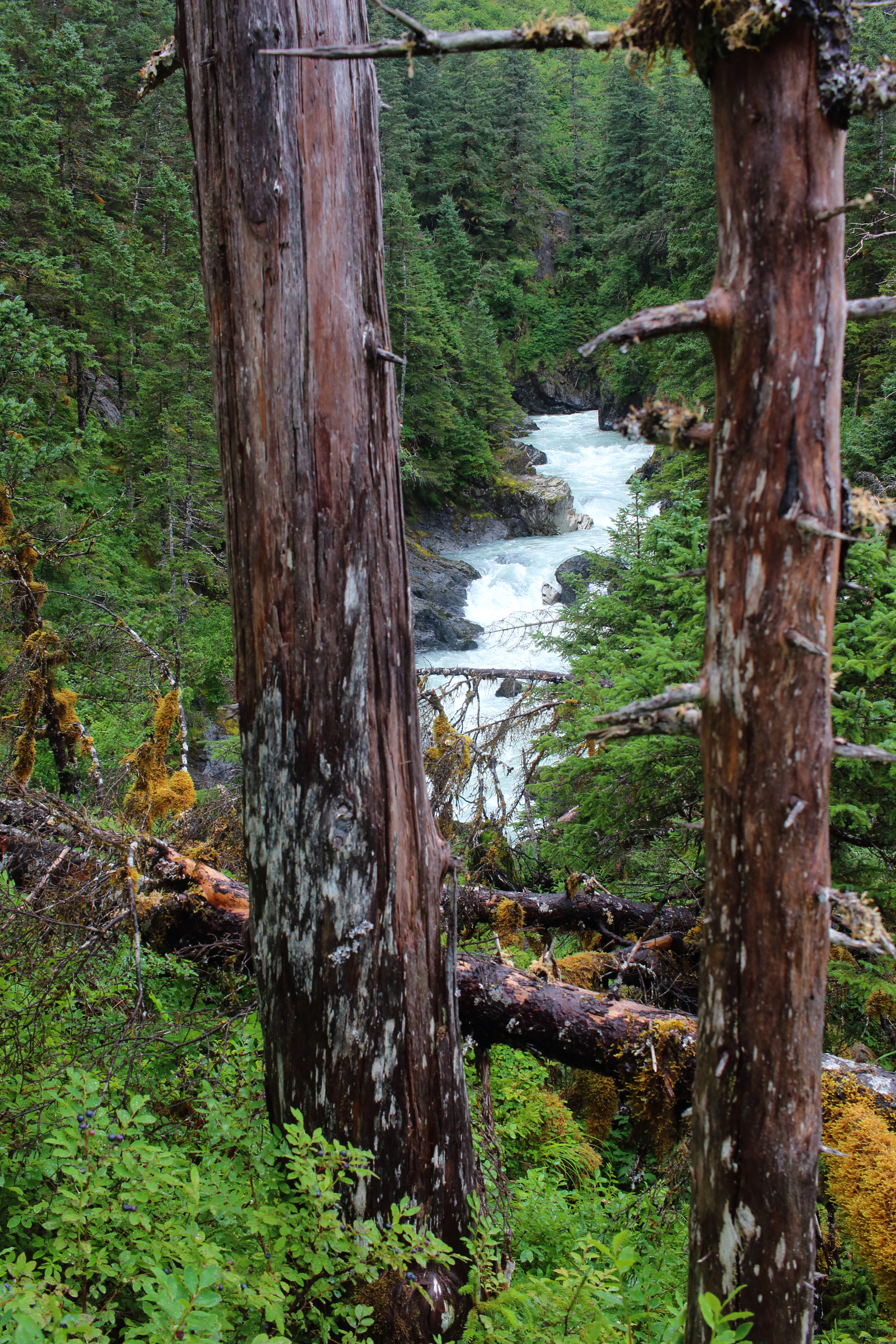 — The river rages down a rocky gorge here - unsafe to cross on foot.