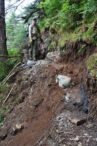Eric Clark checks out a particularly difficult bit of trail.