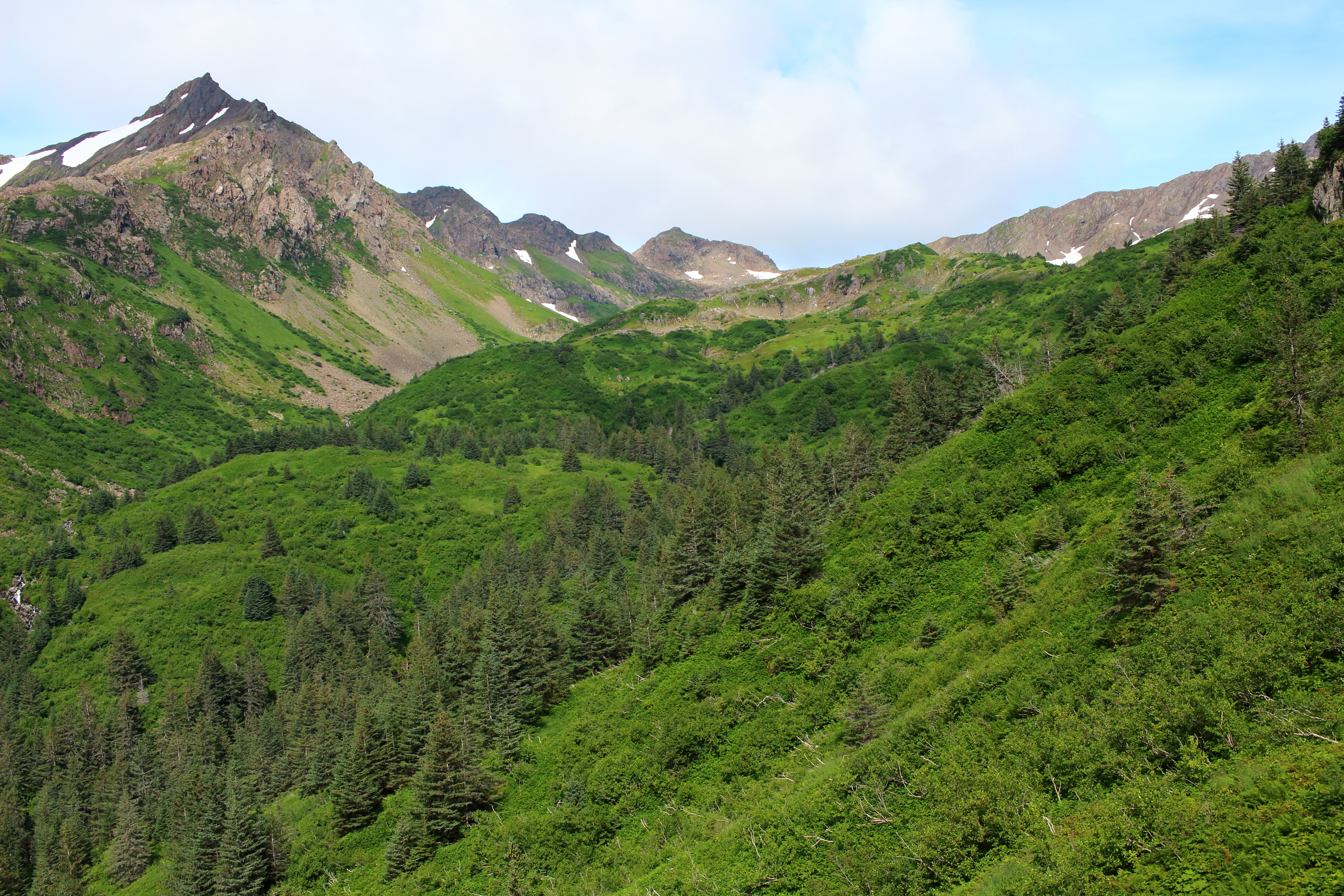 A bowl above Taylor Bay, as seen while scouting trail routes.