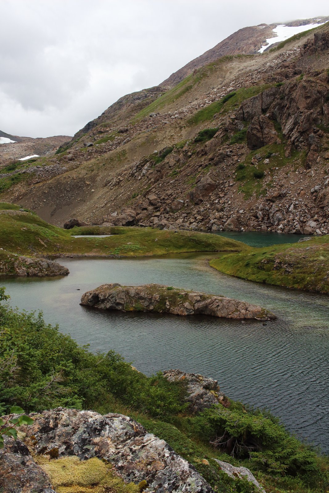 — An intricate alpine lake surrounded by tundra.