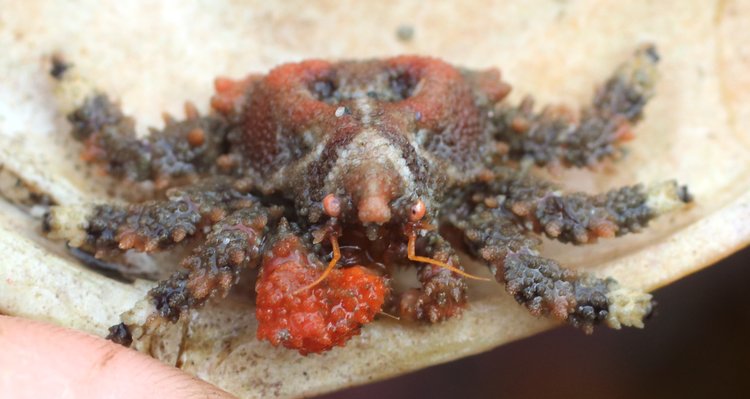 — Sometimes heart crabs cling to rocks, not moving while the tide is low. Other times I find them under cobbles