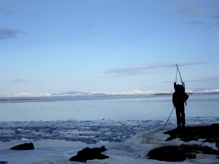 — Caleb assesses the lake ice near Big Mountain