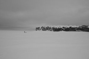 — Kate battles the wind east of Iliamna village on Lake Iliamna