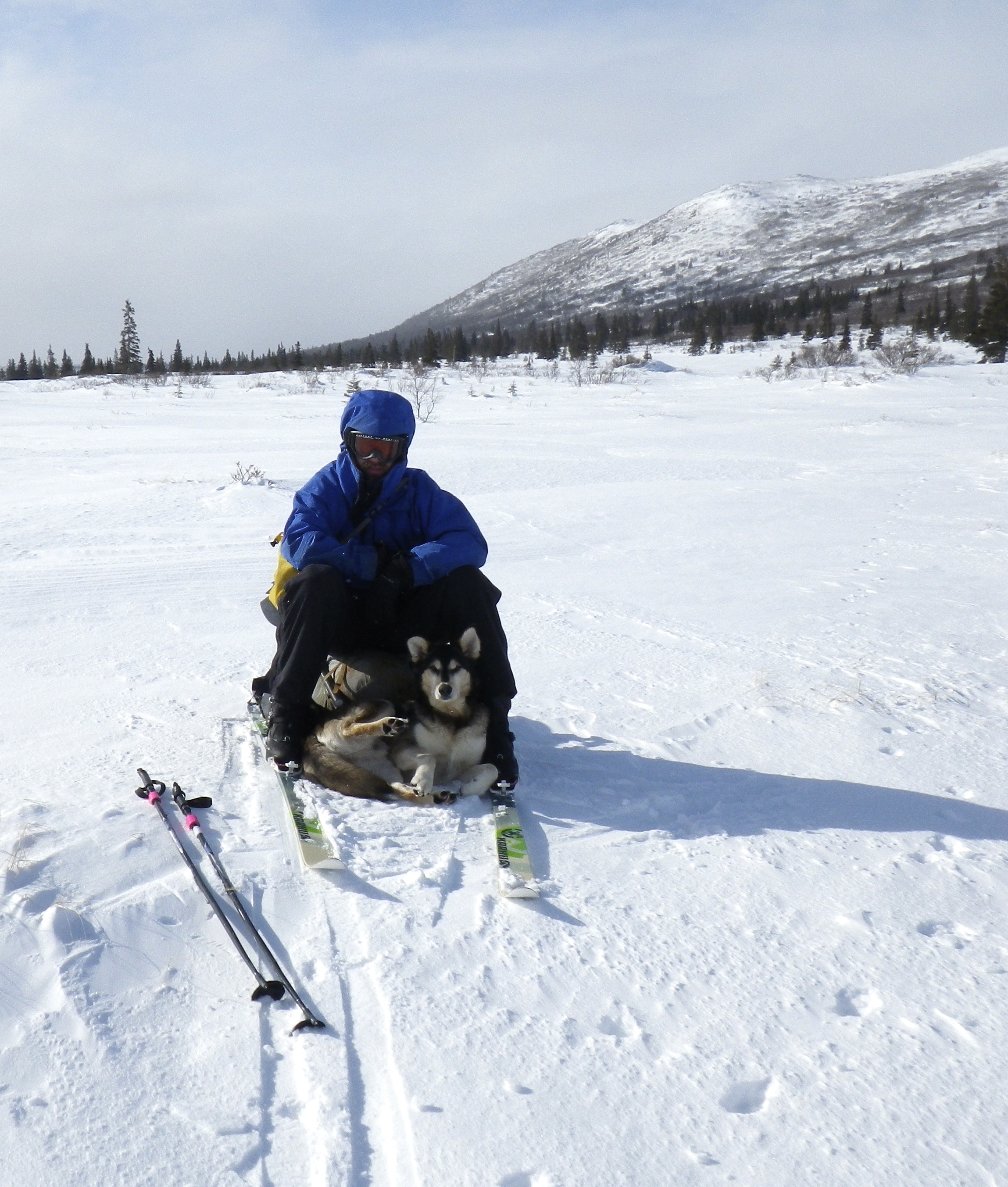 — Caleb and Russell the Dog take a rest near Big Mountain above Lake Iliamna